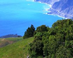 I remember it seemed a long and anxious drive through Salinas, Seaside, Monterey, and Carmel to get down the coast on Highway 1. But, I also recall after having just turned off 1 onto Nacimiento-Fergusson Road to climb up into the Santa Lucia Mountains, we met Steve in the TravelAll with Bob and Ken. What a grand encounter that was. After a brief respite, we both headed up the steep switchbacks of the climb up to the top where it intersects the gated FS Central Coast Ridge Road, now Cone Peak Hiking Trail which heads North to connect with a number of other hiking trails through the Ventana Wilderness high above the mighty Pacific ocean, on one side, and FS 23S02 which heads South and ultimately connects back to Highway 1 about 9 miles South near Plaskett Creek.