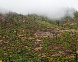 We spent most of our time on the back deck and in the yard. He only has one neighbor and it is on the side with the least view potential. The views to the East and South are spectacular and completely wide open. Pastures with sheep and cows adjoin his property with just one cluster of buildings in sight some distance off. The surrounding mountains and their patchwork of evergreen and deciduous trees offer a mesmerizing vista. We got settled and fairly well set up for dinner and then headed off for a hike in the canyon to the SE, above Smithneck Road along Smithneck Creek.