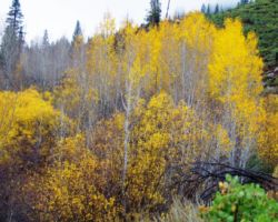 Right away, our decision was paying massive dividends. The nicely paved Jackson Meadows Road rose above a spectacularly beautiful golden yellow meadow with the Little Truckee River meandering side to side. The grade was very slight, making for numerous oxbow lakes and horseshoe shaped sand bars and peculiar patches of vegetation resulting from past flows, course changes, channel corrections and seasonal fluctuations. It was stunningly beautiful. At some point we had to get down there to check it out, but I was worried about the threatening weather, the road conditions we would face above, and the time it might take to get across. Still, the pull to get down alongside the river was immense.