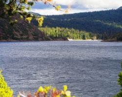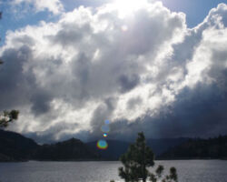 In a few miles we were looking for the first of many lakes we either pass by within sight of the road or pass by roads leading to lakes. The first on our list was Weber Lake. We came to a huge intersection and caught a glimpse of a body of water out in a flat grassy meadow, but not seeing a sign or designated turn off, and not being impressed with what we saw, we continued on down the road. Next up Jackson Meadows Reservoir.