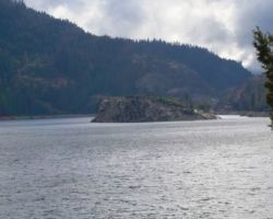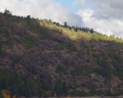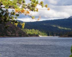 Jackson Meadows is a big body of water. It is in more of a typical mountainness setting with heavy forest cover. By now we were looking for a lunch break spot, but it was windy and cold and the elements produced much whining. It was difficult to relax sitting in the truck with the window down, and I was very happy to roll it up and turn the heater higher and continue rolling on down the paved road. Despite Jackson Meadows Reservoir feeding the Middle Fork of the Yuba River, today was no time to get out of the vehicle and explore its banks – true mountaineers.