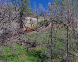 The most likely access onto Road 40 was a few miles beyond Knoxville toward Morgan Valley, just past the turn off to the Homestake Mining Operation, which is now part of the UC Davis McLaughlin Reserve.  The intersection was obvious, the gate open, and the road in good shape.  This last part changed rapidly and radically.  Through beautiful Bosch Canyon and some sweet homesteads, past remnants, equipment, buses, and other assortment of history from the Manhattan mine, owned and operated by