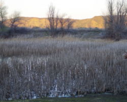 As we neared the pond, we saw some trees and I noted it would be great if we could get into them as they were so rare out here. Sure enough we went right to it; a great bowl below the road, protected from the wind, with trees, a small lake, grasses, reeds, and tons of birdies. This was a sweet spot, so good in fact it challenged to be worth the drive up here. Good luck getting down…