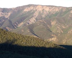 We stayed on the road, rubber side down, and we did make it to the ridge.  There was and had been nothing but brush in this area, so the views were great.  It was a tad breezy, but sunny and warm out of the breeze.  There was a wide spot right at the intersection of the North-South Ridge Road – Fiske Creek (at no point does this road get to any creek, so why it bears that name is beyond me.  It should be named if you got up here to this ridge – congratulations! – good luck getting down Rd.).  I know that is too long a name for a road but it is fitting.