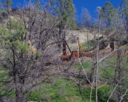 The boys helped us load the rock and Steve drug out some of the brush for them.  I was good with leaving after one night as I was mid pond expansion and Steve had a dinner to get to, but I really was concerned about getting down that dam road.  There were 2 spots in particular that seemed to have a hump on the inside track directly opposite an area of eroded road on the outside such that the truck watch being pitched over the edge at a point where the outside tires were bouncing over a notch where the water had carried the road away – far down to the creek below.