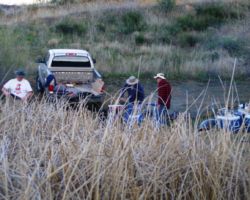 We stopped at a BLM day use area, had a beverage, and walked down to the lake to see what we could see.  Sure enough, we found some driftwood that would look great at the pond.  Bill and Tom arrived shortly, despite not receiving the kind of assurances from us that we had crossed over 2 bridges and were still in front of them.  Steve and I must have been chatting it up or just tripping on the scenery because I don’t recall if we crossed bridges or just elevated road above wetlands, or if it was a causeway, or jetty, or land bridge or how many there may have been.  I believe Bill still suffers from the ridiculousness of Ken and Dave not finding us at the end of the road despite their best efforts, and so he puts a bit more energy into directions and meeting locations.  I on the other hand, rely on years of luck and outrageousness to make sure the boys are united in the end. When Bill and Tom arrived, they too received a rock or a log to put in the rig for later use.