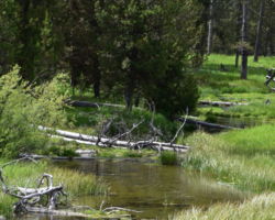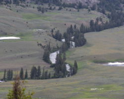 We headed up Highway 191 along the Madison River. As I write this story and doing the googol map research, I am reminded of one of my prior trips to Yellowstone where I was able to walk from my campsite into a cold river and then over the hill from that to a hot river. I remember going back and forth a number of times between the hot creek and the cold. There were other people around, but it was not mobbed or the madhouse it would be today apparently. I have never been able to piece together my memories on subsequent trips, but this place sounds like a possibility. Between the Madison River and the Firehole River or Terrace Spring, this could be the place. I am almost certain I walked from the campground, so it had to have been close.
