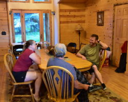 Our first day up there was spent lounging after the huge drive and taking short walks on the dirt roads of the property. The other homes were spread some distance away so you really felt like you were out in the woods when out of the house. I recall Jo forgetting her medications so they had the neighbors go into the house and Nick used his UPS connections to get them delivered to a store not too far away. It was quite the commotion.