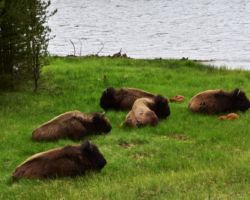 We only had one minor interaction with some yahoos that stopped in the middle of the road to look at a few buffalo that were relaxing down by the river with their young. It was a beautiful spectacle to see with no one else around. This was a huge day with lots of driving, but it was all spectacular country and beautiful vistas, and interesting changing weather. We were pretty thrashed when we got home. Thank god someone else was cooking dinner and all I had to do was eat and climb the stairs to bed.