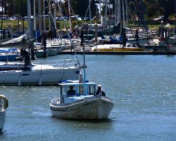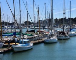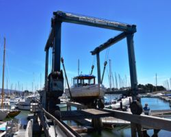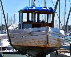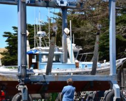 This was a huge and exciting day for Mike and his then partner Gregg to bring the boat into the Marina for some major attention. Mike fulfilled a lifelong dream of boat ownership by buying this 1947 Monterey Clipper which were renowned fishing boats up and down the California Coast. It is the quintessential boat in San Francisco’s historic Fisherman’s Wharf and the mainstay of the sardine fishing fleet during Monterey’s Cannery Row heyday. It is the logo for the Noyo Harbor at Fort Bragg. Joe DiMaggio’s family had one in San Francisco that he used to work on with his brothers to bring fresh fish, shrimp, and crab to the family restaurant. It is about as famous a boat as you will find on the West Coast.