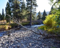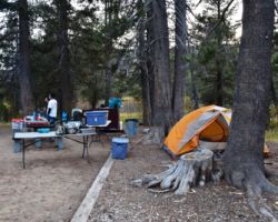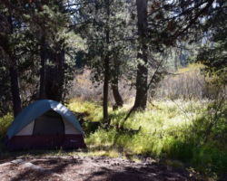 I believe we had a local day, heading to Red’s Meadow Resort and hitting the little store there, checking out all the backpackers, and making some phone calls. We took a hike along the river and went to see the Devil’s Postpile National Monument, had a nice little tailgate lunch and beverages. When we got back to camp, we had neighbors, 2 or 3 younger couples if I recall. They stayed up late, but weren’t too noisy. On our way home is apparently when we hit the Obsidian.