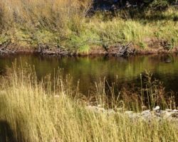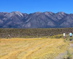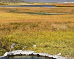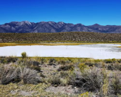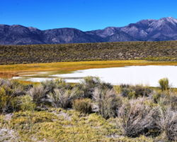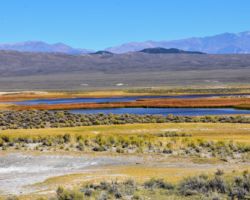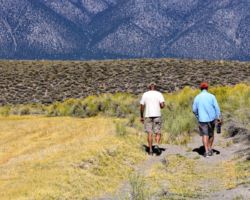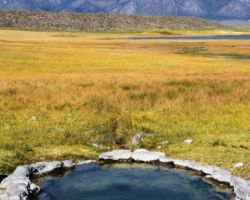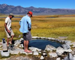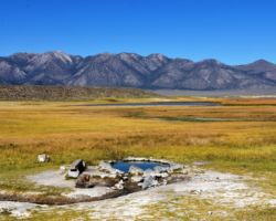 There weren’t any sites within sight on one side of us and the next site was open for the first night, so it was pretty sweet in the campground. Plus we had clear unobstructed access to the river behind our site, which made for very pleasant relaxation. We also found respite in a couple hot springs. We headed out one day into Owens Valley to hit 3 hot springs. I recall one being too hot to get into. I have photos of us walking out some distance from the rig, but have no idea of what the names of the springs were, or how we found them, other than following my Hot Springs of California/Nevada book, which of course I can’t find now. In any event, the pictures look nice.