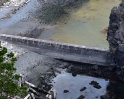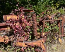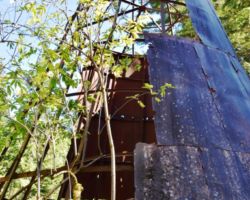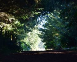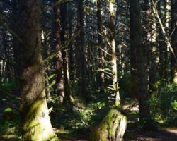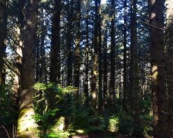 The next day we decided to head inland to see what the mountain country was like. We headed North on 101 a few miles into Langlois and ate at the Spoon. After lunch, we headed East up Langlois Mountain Road. We passed on old mill site with the remnants of an old fashioned tipi-burner where they would burn all the bark and mill-ends to dispose of them. The road got smaller and smaller and split off to people’s property, until we finally reached a gated fence, the literal end of the road.