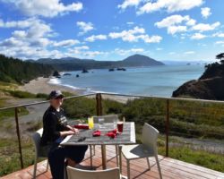 We headed North up 101 into Bandon to get gas and take a look around. We headed East off the coast on Highway 42 into I-5. On the way down 5, K made a reservation at a VRBO in Grants Pass on the Rogue River. It was a great spot, especially for the spur of the moment reservation. K went into town for Mexican food and we at out on the back patio overlooking the river. Sleep was excellent.