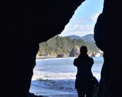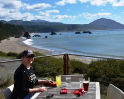The weather turned a little drizzly the next day so we set up the rain tent over the table and fire and that took care of it. We went into Port Orford, passing some super cool Cranberry fields. We stopped in town an outstanding lunch at Redfish, outside overlooking Battle Rock Wayside Park. We walked down along the beach and took a ton of pictures. Everything seemed so clean and vivid; we had a great time. Back up at the park, they have a visitor’s center. The old timer in there was a super nice guy and we talked and talked, it just being the 3 of us.