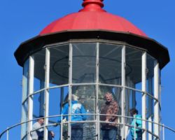 Fortunately, the wind blew out by morning and it was a gorgeous day. We walked along the beach and saw a herd of sheered sheeps that looked like they had been attacked by paint ballers. They were kinda silly looking. By the time we headed up to see the lighthouse, they had stopped doing tours, but we were able to hit the gift shop and buy some shirts.