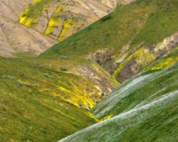 Camp was so decentralized, it took an extraordinary amount of time to get all packed and loaded. However, despite burning all my wood and drinking all my beers, I was overjoyed at bringing home so much of my food and acquiring a bag plus of briquettes. That is a good days work by any measure. I pulled out of camp after Rhino and Kevin and passed a dozen or two rigs scattered all over the place; camping, hiking, maybe photogs taking in the big bloom. On the way down, we passed another two dozen rigs easily, screaming in to shoot their guns or ram each other by whatever means they have. It was definitely time to escape.