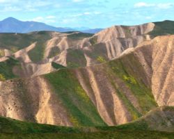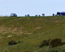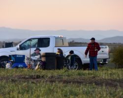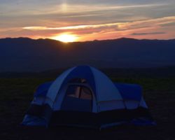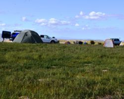 Sure enough, Road P12 is marked by a huge white road sign; not that it says P12, but the big white sign was sign enough. Almost certain now that this was the road they were camped on, I proceeded over hill and dale, and arrived at the hilltop covered by rigs and scattered tents. Home at last. No sooner had the boys greeted me, Rhino and Steve rammed into camp; all accounted for. The weather called for consistent winds so I was concerned about being on the very top of this knoll, but the boys were already bedded down, so a more protected site was out of the question. Being little more than a grassy hilltop, I had plenty of options to set up on the outer limit and oriented my truck alongside the tent as best I could to block some portion of the breeze.