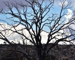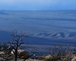 The morning wasn’t bad. A breeze, but only slight overcast; sun, fire, coffee. We needed to gather some wood from our fire ravaged surroundings to make sure my 2 barrels lasted the entire trip. Morning fires would be necessary, and possibly afternoon, evening, and late fires as well. We knew this was forboten, so we gathered and somewhat discretely piled the wood on the edge of camp behind trees and shrubbery. It was time to explore.