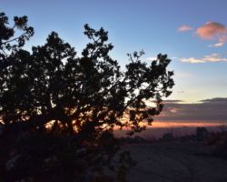 I picked my way through the beach ball sized field and into the larger VW bug sized boulders and on through to the full sized pick-up rocks that seemed to line the edge of the hill. There was a dead Juniper that had perfectly formed in front of, and below, the large balancing rock, growing in a horizontal form, blocking access to getting up into the cave that had been formed. It turned out the balancing rock was not at all, as we were looking at the front edge of a massive boulder reaching far down the hill and only partially resting on the flat stone below. I carefully scrambled around the sharp pointy branch tips of the Juniper sculpture and hopped up onto the flat bed. Unfortunately, its surface was very rough and pointy, as if the City had put sharp points on the park bench to prevent the homeless from sitting. I laid down nonetheless and stared up at the speeding sky. There was so much motion, it almost made me dizzy. I sat up to partake of my last beverage.