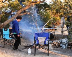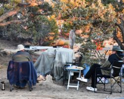 We joyously went back to retrieve Bill, who certainly is too kind and strong to have let his viewpoints be known to Mr. “MAGA”. We were unpacking and celebrating our find in no time. The breeze was up and it was chilly, but we had plenty of daylight to set up, find tent spots, and get situated for the night. A fire lit, Billy at the helm of some outrageous beef stroganoff, a celebratory beverage, peace, calm, privacy, and the night was absolutely complete. The night was cold, but I was prepared. I had just come back from our property where my brother Mike and I had camped in the low 20’s. Bob and Steve joined us for the second night, but they didn’t warm it up much. Perhaps I was overconfident since these temps were only getting into the high 30’s.