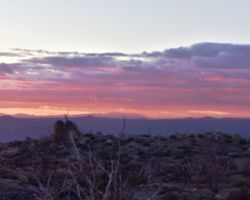 We heard some great tunes on the way back and actually passed one car; our only for the day. With Ivanpah Road closed for the foreseeable future, this far NE corner of the park will become even more remote. We drove up to the rock cabin at Rock Spring so the boys could see. It was great to have all the memories come back as we faced into the breeze and faced back towards where we had left the boys. It was time the make the last run down Cedar Canyon, Black Canyon, and into camp, where cocktails, fire, and dinner awaited.