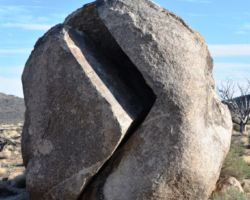 I couldn’t help but turning left at a spot I remembered from the map and drove down a mile or so past a couple decent camp spots and what Tom thought was a half buried body. We came back to the main road and crossed over heading back into a spectacular site, large, flat, massive boulder formations to scramble upon, large trees for shade, just a great spot I would love to come back to with 30 or so people to all camp together with kids, and parents, family and friends. It would be a grand venture. We hopped up and down the various boulder fields, took in the sights, smelled the air, and warmed in the sun. This was a must return to spot.