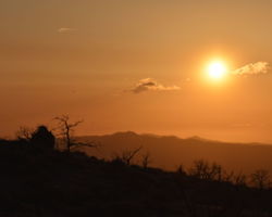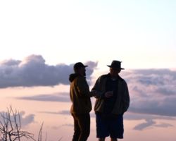 Jordan and David set up their tents and organized their stuff. Jordan didn’t have an ice chest so all his meat and fish were just in the trunk in the grocery bags. We got everything situated on ice and were in good shape by late afternoon. Jordan pulled out a bottle of Bulleit Bourbon that I don’t think left his hand for 8 hours. We had shots and then he and David struck out West, with nothing but the bottle in hand. Tom, Bill, and I ventured up the road to see if there were still people camped and to check out the end of the road. We could see the boys on top of the nipple, 2 silhouettes’ against the distant sky.