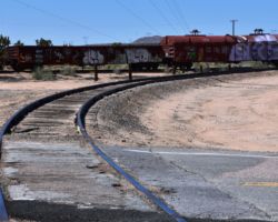 As David and Jordan chatted, Bill surprised me with quite a sizeable flat, triangular, piece of this white chalky rock I had gathered similar pieces of in the ravine. It was a sweet piece and I was grateful to have it. We said our goodbyes and headed up towards Cima. I was pulling over to check connectivity to call Kristen, when I noticed all the rail lines and a few interesting cars I had noticed on the way in. I got out to scout and gather a few train souvenirs, when David pulled up to say thank you and goodbye. It was a great trip with him. Just a few moments after David had left, Jordan pulled up and I showed him my booty. We ended up talking there for an hour or so and it was hard to leave him. We had a really good time.