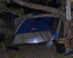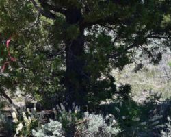 Towards the end of June, I came back to the property, driving for the first time straight up to the top with Bob. The weather was awesome. I chain sawed the lower branches on the North side of a couple big Junipers about 50’ south of the parking lot to make tent spots. Bob and I set our tents up on the soft deep duff under the trees and slept very well. It was really rough on our joints moving about up top where we wanted to have the kitchen and getting up to the cocktail lounge.