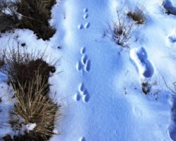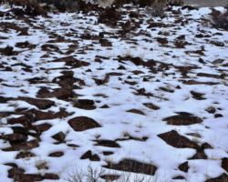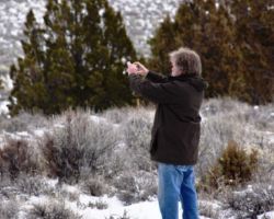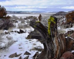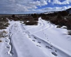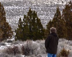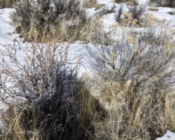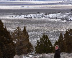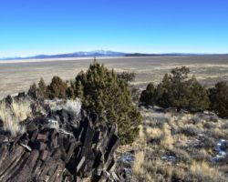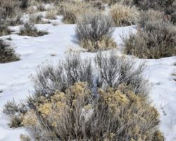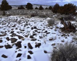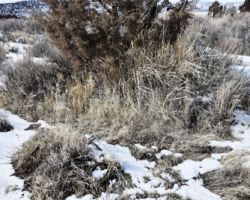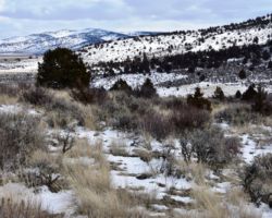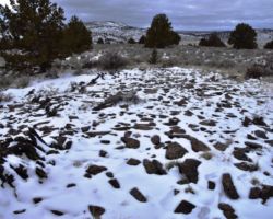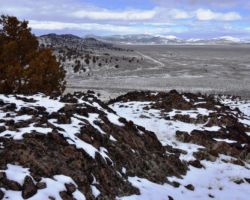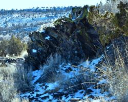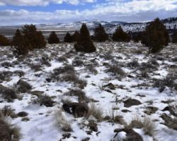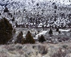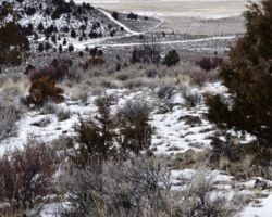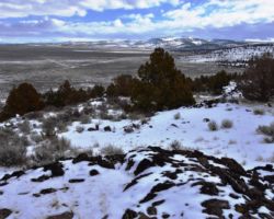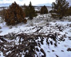 The weather had not changed much from February to March. We stopped in town to give Don a big bottle of good Whiskey in appreciation for his help. We visited Peter Lassen’s grave and a cool smoked meat shop South of town. When we got out to the property, we noticed there was only a little more snow on the ground. South Grasshopper road was snow free, but our triangle road and the property line road were both covered in several inches of good snow. The temperatures were still in the 40’s during the day and teens at night, but we still camped on the property for the first time. We got up the hill a few hundred yards following a path of crushed brush to a nice fat Juniper overlooking Dry Valley to our West. It was a fine camp spot.