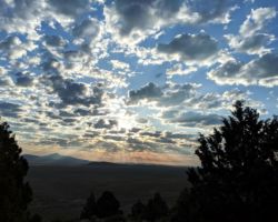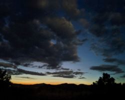 Bob left the next day and I stayed another night; my first solo night on the property. It was most rewarding. The sky is such a mind blower up there. Sun, clouds, shadows, angles. The sunsets are great and the moon has really been a treat, even though the moon is not my favorite things. The stars are often spectacular, again, depending on the moon. The morning I worked on the trails up top, and tried to sort of materials in order of use. I began to add to the natural rock wall against the fire pit to try to create a sort of fire corral, reducing the breeze from the West and catching any sparks blown East. I cut the rest of the lower branches out of the ring of Junipers to create 4 more tent sites and a sweet shade spot on the East side of a Juniper near the kitchen. This would become a favorite afternoon/after work/early cocktail gathering spot. I also visited the boys down below. We are all getting along quite well.
