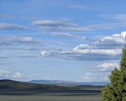 We were unpacking and setting up and organizing for a while when the guys came up in a side by side and a quad, the 3 dogs raging all about. Dale had brought a bottle of champagne to celebrate so we went out to the point to enjoy the view. We were laughing and joking and Dale was fooling around with the boys. One had a wrestling shirt on so we talked wrestling and football. Dale also wrestled and ran track and now coaches wrestling, so he knew all the kids that came out of the area, and his son knew Jason Strain’s son in Alturas. We were having a great time.