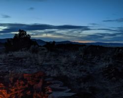 Soon it was time for a nap and I snoozed for a couple hours. I had a great nap and awoke to the slightest pitter-patter of a slight drizzle; hardly enough to wet the ground, but enough to sweeten the sage and provide an olfactory treat. Upon awakening, it was found to be cocktail hour, and I prepared for a repeat of the previous night. No massive screamer, but I saw 7 shooting stars. Some may have been said to be “falling,” but I am not sure I know the difference. After the free lifetime subscription to Sirius went to bed, I hooked up my tunes and had a great little fire. It was a great night.