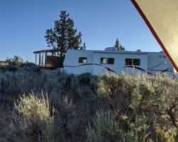 In the morning, despite it being the first thing I saw, the trailer did not look so massive or intrusive. I think being out in the open helps that too. Fortunately, I could still see the kitchen from my tent so it wasn’t like the trailer obliterated everything else and dominated the hill top. The area is just too big and open for that, so it had already begun to fit in. I got a fire going and coffee, made my morning constitutional, and greeted Mike as he emerged from the first night in the trailer. He was happy.