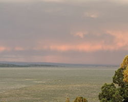 The wind gusts were getting extreme. The wind blew pretty steadily at a good clip, then ramped up considerably at frequent intervals. I had to hang on to my red Solo cup for dear life and protect my wine bottle from toppling over. It was getting dark and the lighting was extremely contrasty. The sky was inky black to the East with lightning every few minutes. Almost no thunder and almost no vertical strikes; it was mostly cloud to cloud that blasted out a shock of light. Occasionally I would see a horizontal lightning bolt, and every once in a while I would see a massive vertical rod of light and power, blasting light over the entire sky. It was an extraordinary show.