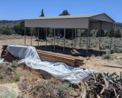 I then added the last small piece of decking on the kitchen and added 5 pieces to the ramp that leads up to the Western Addition. It looks complete now; just a few less things that nag at you. I moved a bunch of the cinder blocks, and tools, and various materials from past projects away from the front of the kitchen, so you don’t see all the mess when you first drive up. It looks much less like a construction area now. I brought one load of materials back down to the bone yard and organized that area a little, and then picked up a bunch of scraps, and garbage to bring home. It was a massive day, and without stopping for lunch, it was 3:00 by the time I stopped, and 4:00 by the time I got cleaned up, loaded, and changed. I can’t wait to get back to finish the cabin exterior and to take advantage of all the work we have done to make each trip up a little easier.