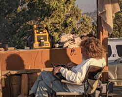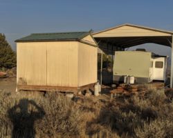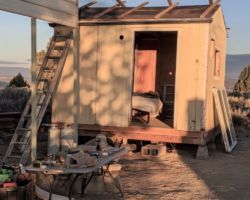 Next morning was calm and still as it almost always is. It was metal roofing day. We knew we needed to start with the gutters, so off we went. We wanted to put some slope on the gutters, but now I think this isn’t necessary and ends up complicating the process a great deal. Also complicating the process is not buying the right materials. We learned that we had both 6” and 4” gutter, connectors, corners, etc., and of course, we didn’t have enough of either to do it in one or the other. Some was also brown and some unpainted galvanized. I bought the materials at different Homo Depots, and the closest one of those was in Reno.