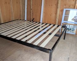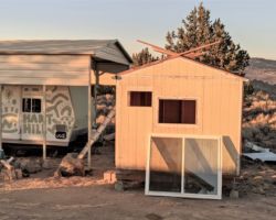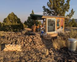 The morning was spectacular, but it wasn’t long before Mike was packing up. He helped me pump water to the trailer and to the kitchen barrel and helped me lift the second window into place on the South side kitchen wall, and then he was off in a flash. I puttered about for a while; compiling lists of tasks, materials, tools, next steps. I moved a lot of materials “out of the way”, so we could get into the next projects right away without stuff in the way. I secured the window in place, cleaned out the freezer, had a nice lunch, and moseyed on down the hill.