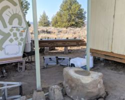The boys had wanted to head up into the Modoc to explore, so I was glad to have some time to putz about the place. I was able to secure the gutter on the cabin, seal some ill-advised screws on the ridge cap, fill the ends of the ridge cap, complete the drain line for the shitter sink, and splash some bleach in the shitter water tank to freshen it up. All the little tasks went really smoothly and easily, so I had some motivation left for the big job, one I wanted to play with, but that may not be worth the effort in the long run.
