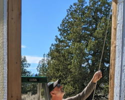 I had picked up some 4×6 for the water tower and a bunch of trim for the cabin, so along with the 55 gallons of water I hauled up, and all the tools and parts, and pieces that always come, I again had a full load. I didn’t leave super early, and with no traffic or construction along the way, I was up top about 1:00. I had begun to unload and Bob pulled in, and it seemed like only a few more minutes and Mike arrived, so I was very relieved we were all up top and accounted for.