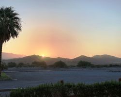 Finally, we went all the way to the top floor and out onto another balcony, this one seemingly on the North side of the building.  It was literally build out against the natural hillside and overlooking the Ranch and campgrounds below.  Lastly, we were led down below to newly constructed casitas situated around the lower gardens.  This is truly where you get the feel of the oasis and lush verdant sense of Furnace Creek.  These places were brand spanking new, really nice, and the setting was spectacular; below the Inn, but above the Ranch grounds and expansive playas.