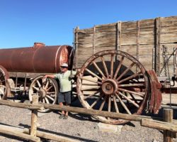 We squeezed in a quick swim at the pool at the Ranch before heading back to H&B’s camp site for dinner.  Another great night, dampened only by the thought of it being the last one.  Beth did really good with all the traveling and the camping.  She got a Death Valley shirt which made her happy.  We headed out highway 374 East over Daylight Pass, past the turnoff to Titus Canyon and Ryolite into Beatty for gas.  We didn’t want to deal with all the forest fire smoke along 395, and were very pleased to be out of it for the ride home.