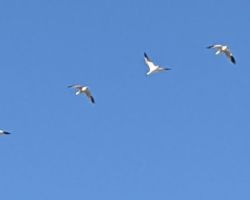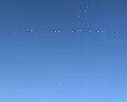 I was heading North on 395 by the time to sun came up so I avoided the brightness blazing into my eyeballs. I didn’t get hassled by the Feds at the border crossing, and was getting gas in Standish when it was still early morning. I was pulled over to take a leak and began to hear a growing level of squawking and cackling. It continued to grow until I could make out the distinct sound of Cranes and then see the massive lines or formations coming right over me. I was stoked and took it as a good sign. I was unlocking the gate by 9:00 with all parts intact. The road was much better, i.e. drier, as was the top around the trailer and cabin. I was barely done poking around to say hello to everything when Mike pulled up and there was much rejoicing.