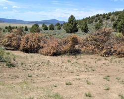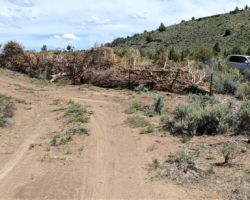 With that, Mike was off. I cleaned up and organized a bit, half heartedly still expecting officer Starkey to show up to pick up the DNA evidence of the break-in. He never showed. I loaded up the truck and headed down to the South gate and hauled the rest of the Juniper trees up against the fence. There was enough material to really make it look like a significant deterrent; at least a good first line. I drug every tree, branch, and branchlet Dale had cut, and I even drove down to the SE corner to pick up another load. It did not cooperate as I hear that part of the Hill is pretty rough, so being in shorts, sandals, and shirtless while wrestling dry Junipers was fairly brutal. I won the battle but definitely left my pound of flesh.
