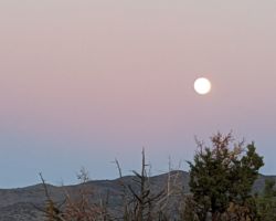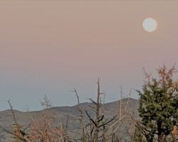 I was back up top about 5:30 and got cleaned up. Mike was puttering around the trailer and came up to the kitchen for cocktails and reheated chicken enchiladas that Kristen made ahead of time for us. We were both in bed early. The massive moon and bad thoughts kept me up much of the night, but the morning was again spectacular, as it has been almost every morning I have been there. After coffee, spinach quiche, and a slice of pumpkin pie, I was ready to rage on the deck. Unfortunately, Mike realized our water pump was leaking and had made a huge mess in the trailer, soaking the carpet and the flooring. He was able to disconnect the hoses and stop the leak, then remove the pump.