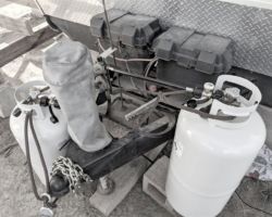 They stole 2 Honda generators, our 100W solar panel, a brand new deep cycle battery, the uninstalled flooring for my cabin, a jack, and I am sure a few odds and ends we haven’t yet realized. What is super gross and creepy is they wrecked the trailer door to get in and stayed in the trailer for some period of time; leaving behind a pillow, sock, cigarette butt, dirty dishes and an old sticky note with Debbie’s phone number (530) 708-7543. They kicked in my cabin door and wrecked the lock, but fortunately did not break the door or the glass.