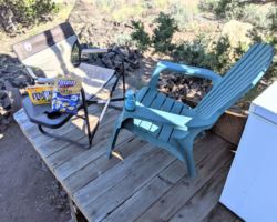 The best thing to happen for us was that Kevin and his son Alek came, and their presence forced us to move away from the anger and focus on the positive; we were here, nobody was harmed, stuff is replaceable, the views, quiet, rocks, birds, and flowers – all the things that we love about the property are still here and will never go away, so we were able to turn the corner, and get on with making the best of this visit to our property. Kevin and Alek got to setting up their tents and Mike and I settled our emotions, and it was soon time for cocktails and soup.