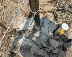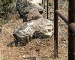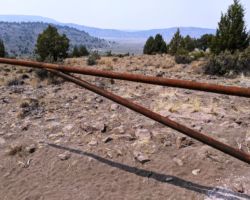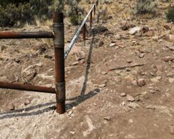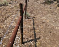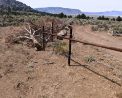 Nonetheless, I had my stuff and 75 gallons of water heading up Highway 80 a little after 9:00, and arrived at the gate by 2:00 or so. I was impressed by the pile of Juniper along the fence and the boulders lined up opposite the brush on our side of the fence. It looked daunting. I was super stoked to see the new gate and fence mid slop up the hill. It was exactly what I had wanted and was in the perfect place. It was a minor nuisance to have to get out again, open the gate, drive thru, get out and close it, then proceed, but hopefully it will prove to be a major cog in our successful defense system.