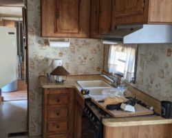 When I told him about dad, he said they used to refer to B of A and the “dago Warehouse” which cracked me up. He immediately apologized thinking I may be a dago, my dad having worked there and all, but we were good. He helped me measure and I helped him measure, and he told me all about his thoughts on the project. It was super clean and very well cared for. I was really surprised to see it was much newer than I had expected based on the video I previously saw. The inside layout was perfect, with a bedroom on one end and sitting/sleeping area on the other end. Narrow galley kitchen and bathroom in the middle.